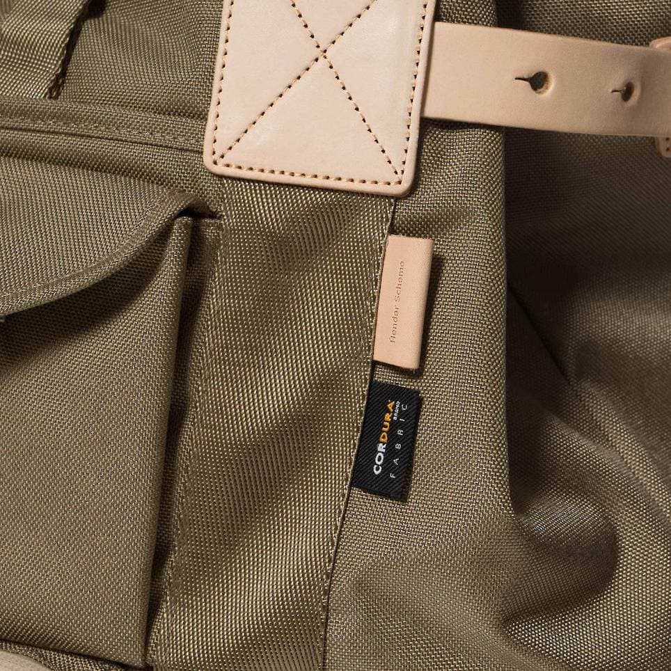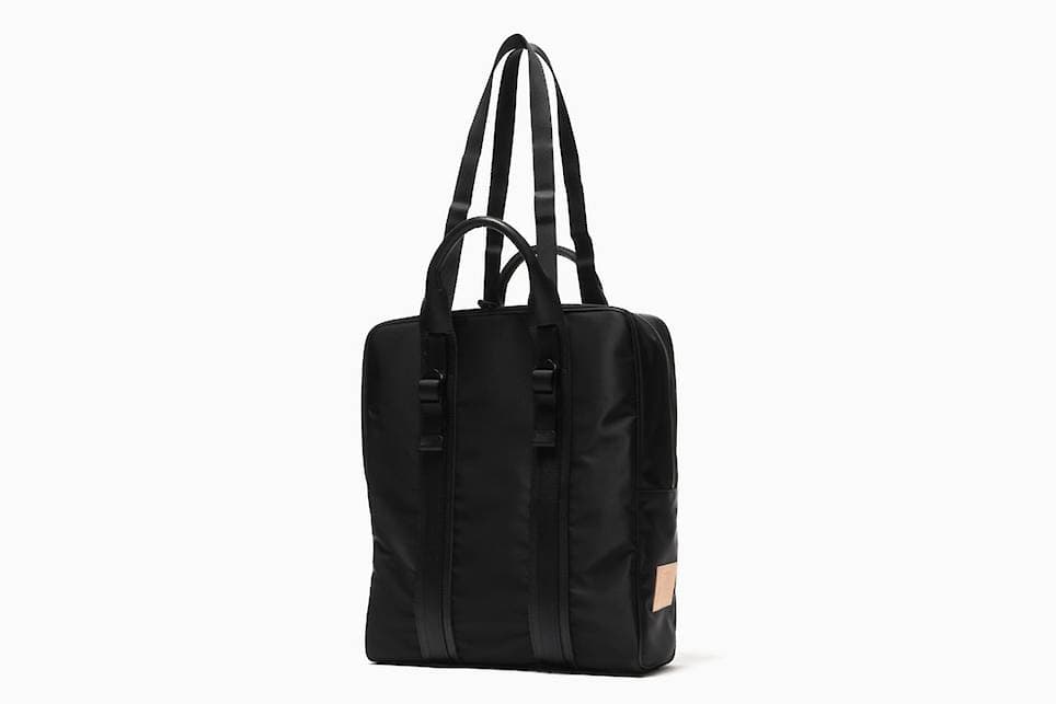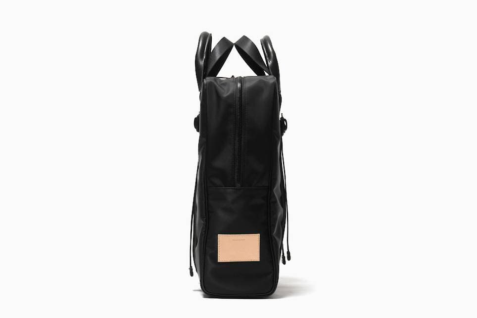 Durable leather reinforcement patches and interior dividers serve to accent the functionality of the bags constructed of dense and tightly woven nylon. Available at havenshop.ca