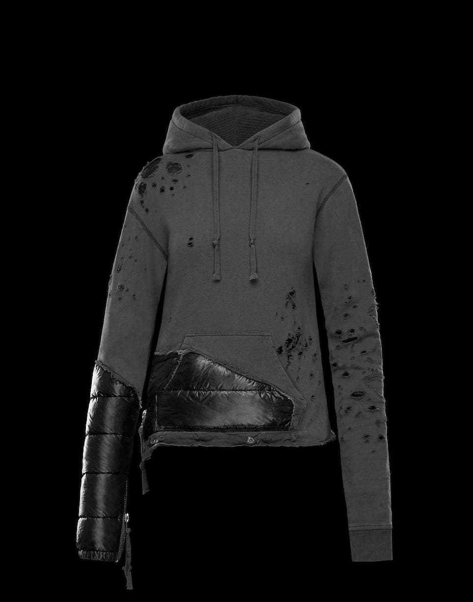 The features of the brand's most iconic pieces are deconstructed and put back together again according to the vision of American sculptor and designer Greg Lauren, in an exclusive collaboration which plays with artistic expression. An unusual choice of materials with a worn effect that recreates the form of the padded gilet. It creates a "worn-in" elegance, the visual record of a story that must be told. Learn more at moncler.com